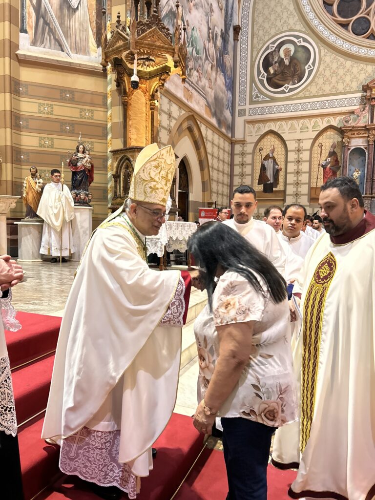 Um dos momentos mais tocantes da celebração foi a Renovação das Promessas Sacerdotais. Diante do Povo de Deus, nossos padres reafirmaram os compromissos assumidos no dia de suas ordenações, renovando o zelo apostólico e o desejo de servir à Igreja com fidelidade e amor, configurando suas vidas ao Cristo Bom Pastor.