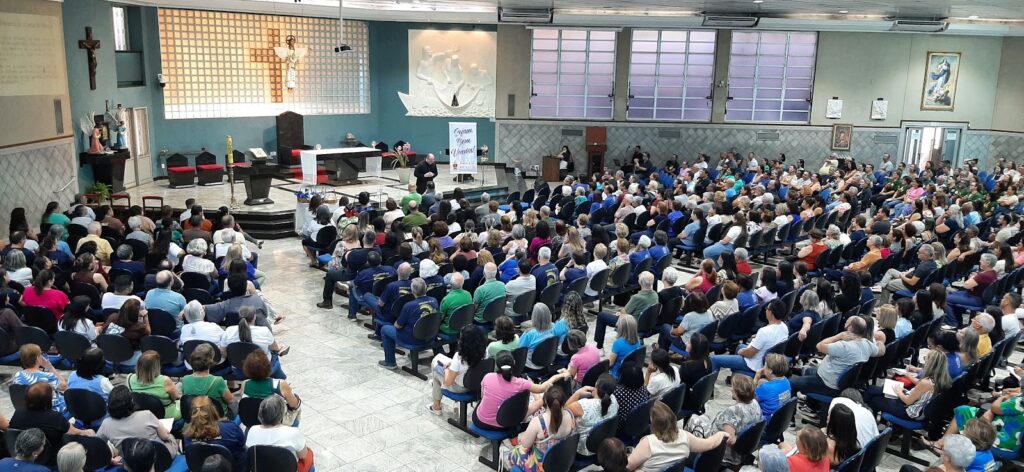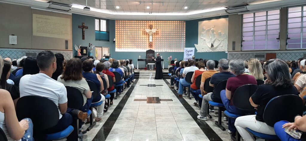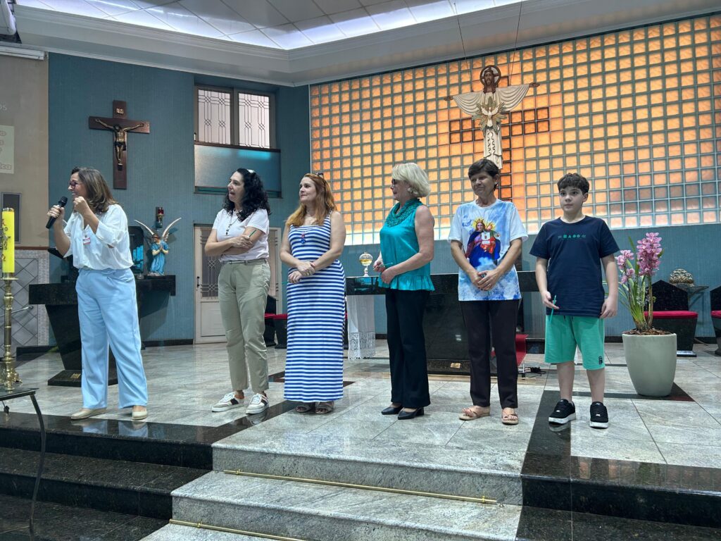 A Pastoral da Acolhida da paróquia também promoveu uma dinâmica interativa, presenteando um dos participantes com uma imagem de Nossa Senhora Aparecida. O encontro foi encerrado com um lanche comunitário no salão paroquial, marcado por momentos de partilha e confraternização.