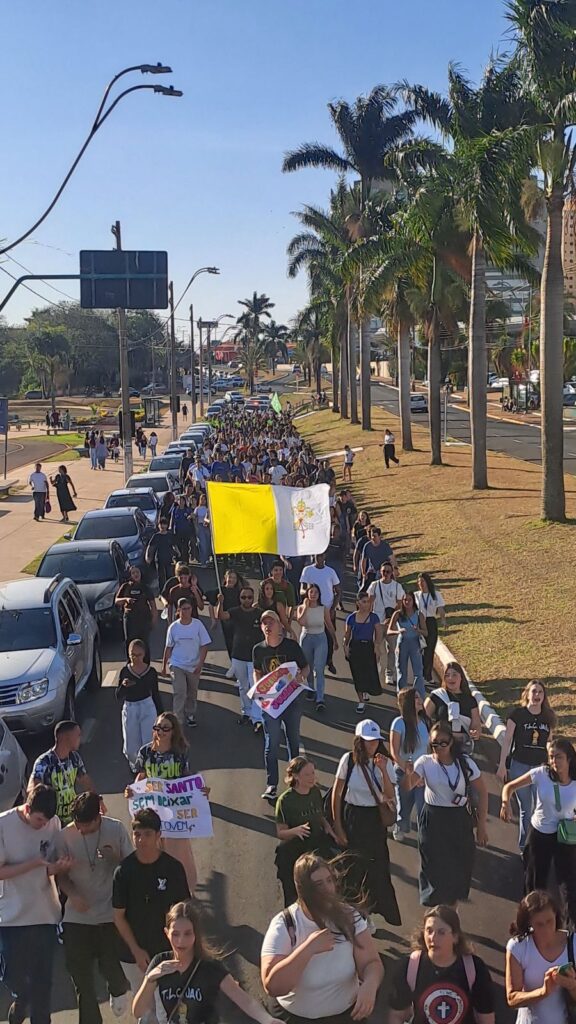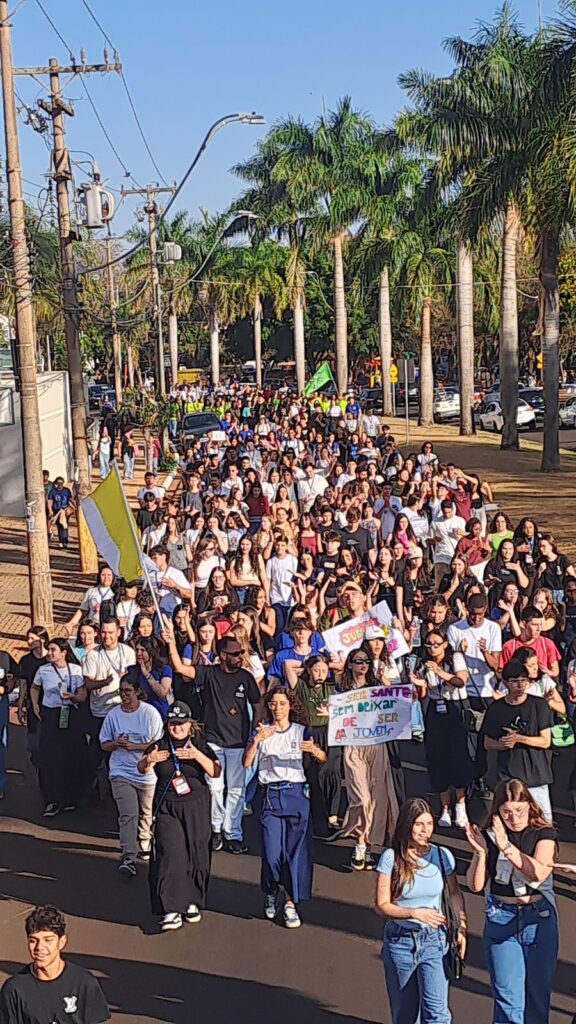 Com uma programação iniciada às 16h, os jovens se encontraram para uma breve caminhada na Av. Dr Quinzinho, em Jaú, até o salão da Igreja São Francisco.