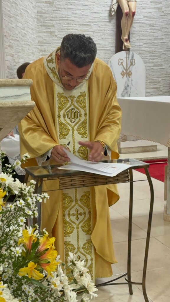 Padre João Paulo, natural de São Paulo, traz consigo uma trajetória marcada por dedicação, humildade e amor à Igreja. Depois de sua passagem por comunidades de Araraquara e Ibitinga, ele inicia agora um novo capítulo de sua caminhada sacerdotal, guiado pelo desejo de servir e evangelizar com o coração de pastor.