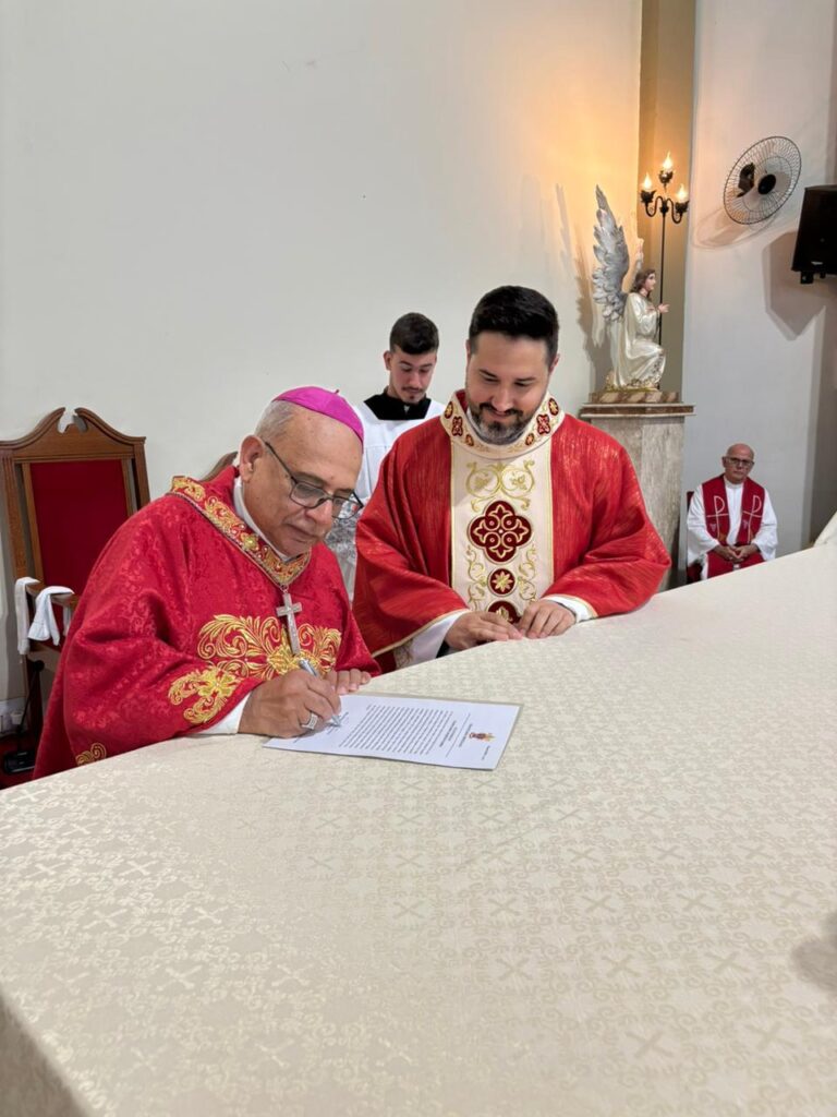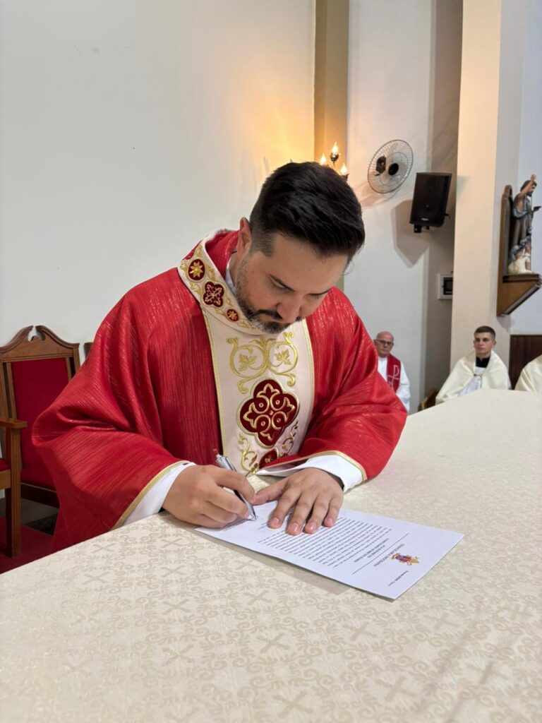 Durante a celebração, Padre Ramon professou publicamente sua fé e assumiu o compromisso de servir com fidelidade, zelo e amor o povo de Deus que lhe foi confiado. Ao final da Santa Missa, conduziu a assembleia na Consagração a Nossa Senhora Aparecida, em um momento de profunda emoção e bênção, no qual toda a comunidade, unida em oração, consagrou este novo tempo de graça à Mãe de Deus.