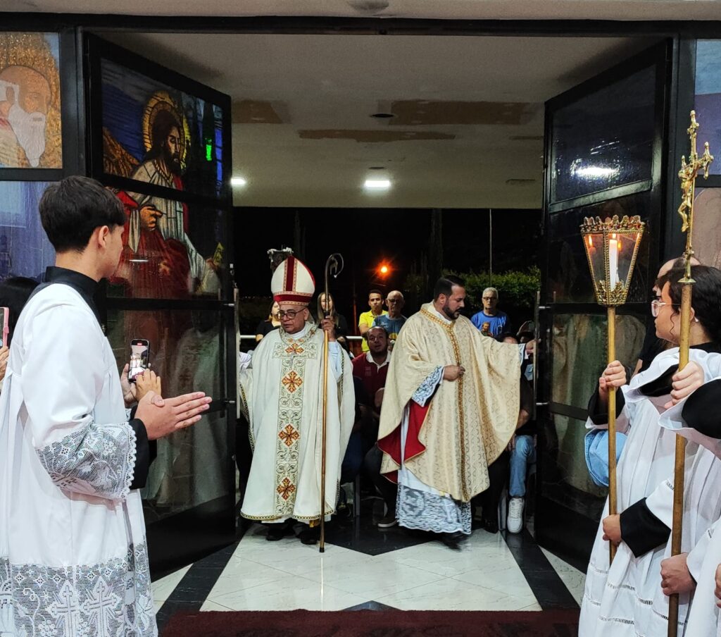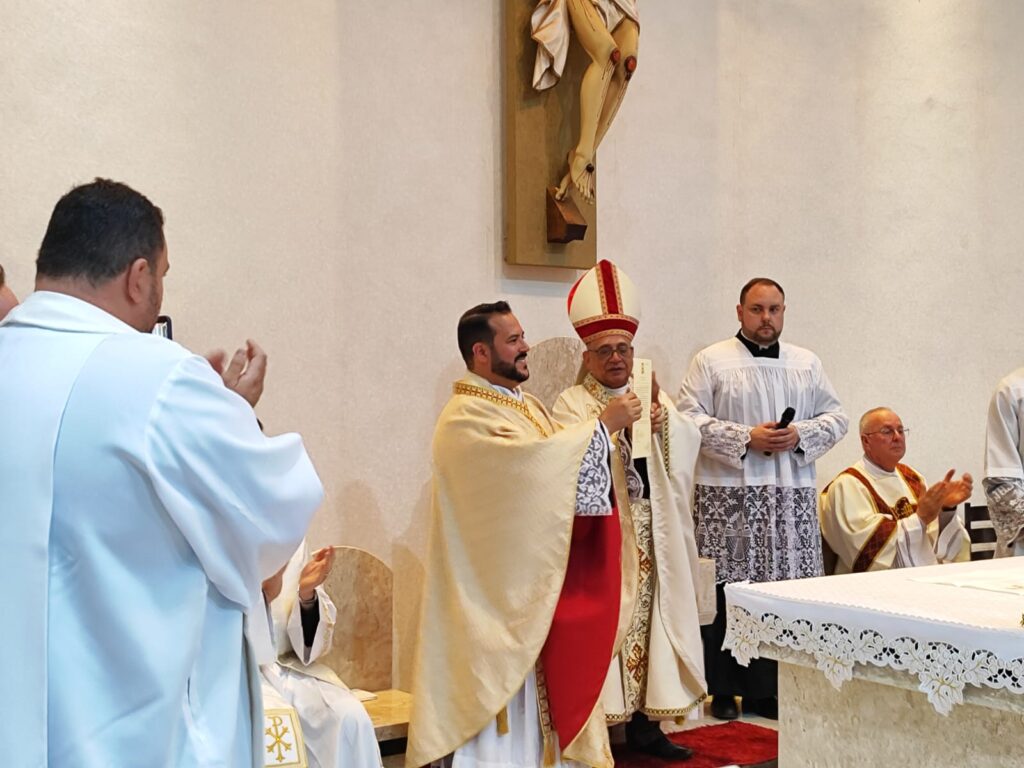 Durante a celebração, foi feita a leitura da provisão, ocasião em que Dom Francisco entregou ao Padre Fabiano a chave da igreja, um símbolo de acolhimento e responsabilidade. Essa chave representa o acesso ao espaço sagrado.
