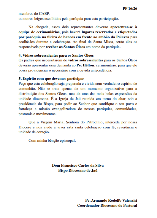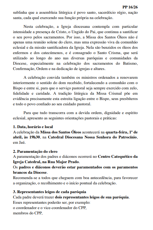 Missa dos Santos Óleos na Diocese de Jaú